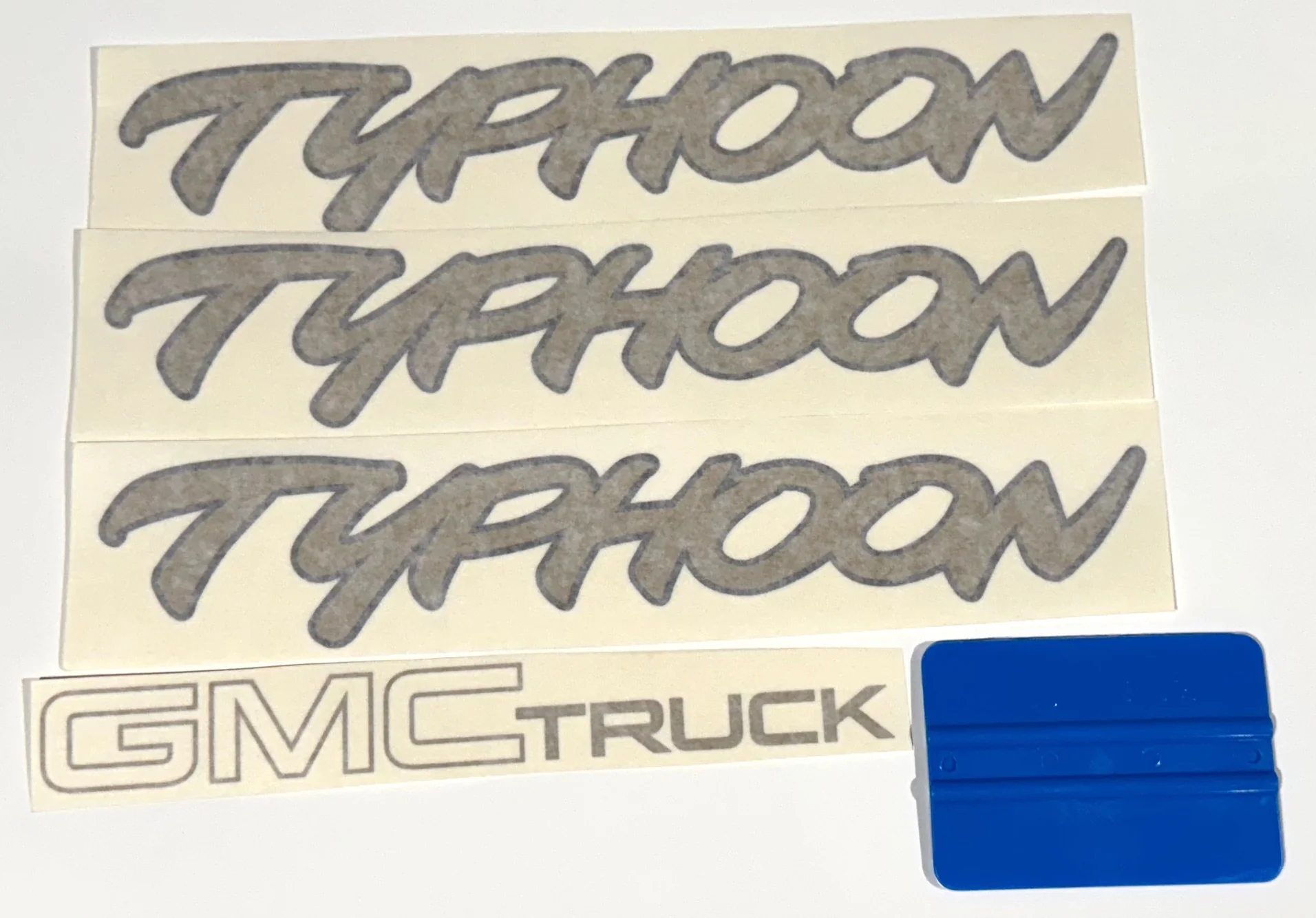The GMC Truck Decal is 100% OEM Spec. These are die-cut from a high quality 10+ year vinyl and also include the clear application tape.